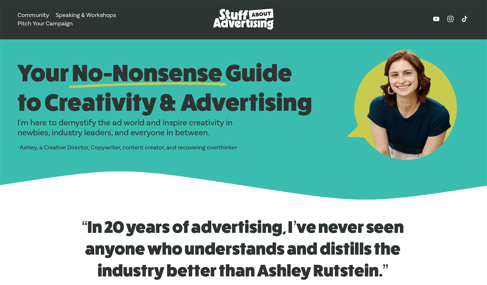 “Stuff About Advertising follows a Creative Director giving honest commentary on the advertising industry and an honest effort to help more folks discover a career in it. On this account, you’ll find videos about ad campaigns, industry happenings, ad career tips, copywriting and concepting techniques, and portfolio support.”