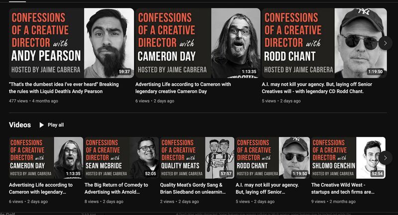 Confessions of a Creative Director tells the stories behind the ideas as told by some of today’s best and brightest Creative Directors. Hosted by veteran CD Jaime Cabrera, the show features in-depth interviews, fun segments and of course a confession or two, all over a few cocktails.
